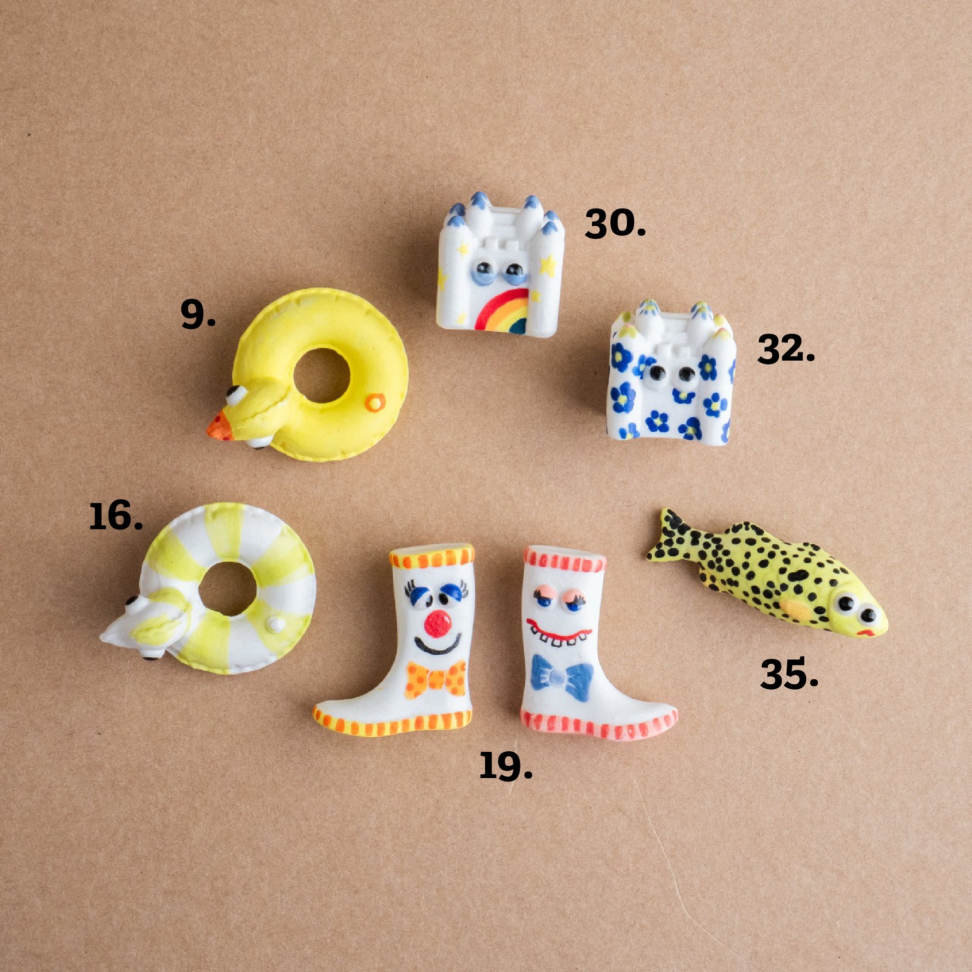 Adoptez une broche qui a du caractère ! Dessinées et fabriquées avec amour dans notre atelier à Morlaix, nous vous proposons cinq modèles inspirés du littoral : le Poisson, la Bouée canard, le Château de Sable, La botte et le Bol à Oreilles.